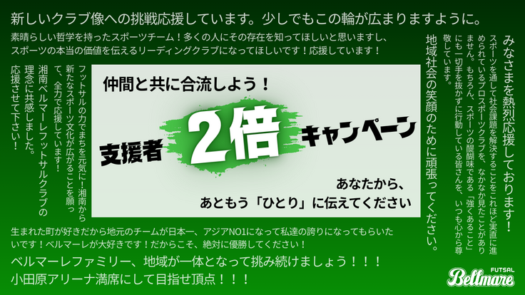 いつも湘南ベルマーレフットサルクラブを応援してくださり、ありがとうございます。