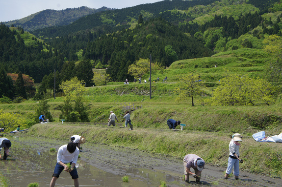 (日本の棚田百選「畑(はた)の棚田」でのオーナー田植え)