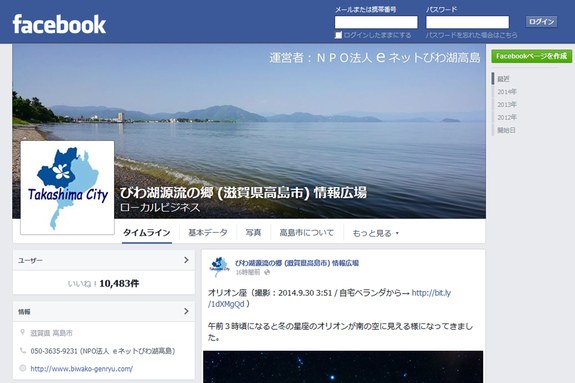 今日は、Facebookページ「びわ湖源流の郷(滋賀県高島市)情報広場」において、応援のお願いを予定しています。
