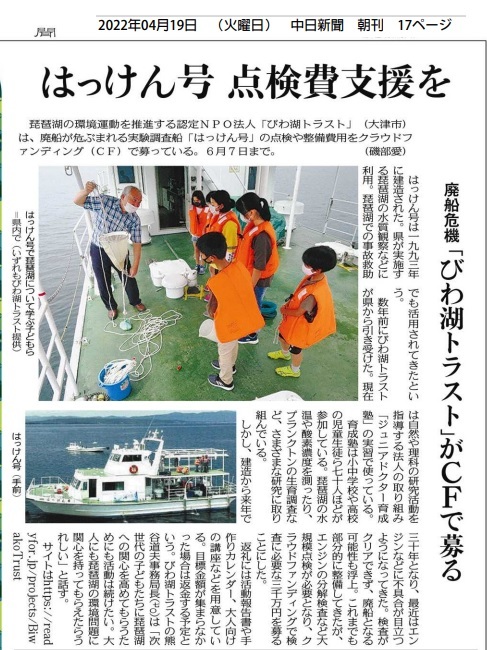 琵琶湖から地球のより良い未来を発見!実験調査船「はっけん号」を救え