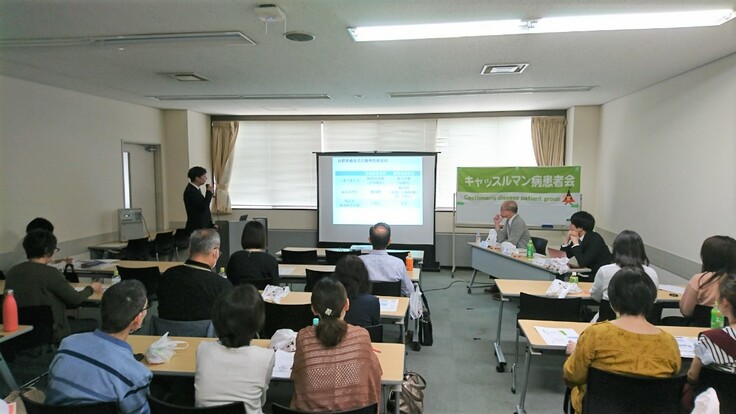 本書の序文でも、「2015年にはキャッスルマン病患者会が設立され、医師・研究者と患者との連携が強められた。この連携が、厚労省稀少難病として本疾患を指定難病承認へと導いたことは特筆に値する。2018年に331番目の指定難病に承認された結果、患者の治療への広がりが急増した。すなわち、アクテムラ®︎は有効であるが生物学的製剤のため高額で、すべての患者に適応することができなかったが、指定難病となったことで医療費の控除が適応され、安心して治療を受けることが可能となった」と述べられていて、患者会の難病指定への貢献度の高さを讃えています。「キャッスルマン病患者会」(http://www.eonet.ne.jp/~castleman/)は187人で構成され(2021年11月現在)、会報や「患者白書」の発行、定期的な会合や講習会を開催して、疾患啓発や医療アクセスの向上に向けて尽力されています。その活動の一端を会からご提供いただいた写真でご紹介します。