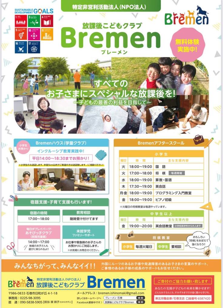 障がいのあるお子さんの保護者の方から、「Bremenに通い始めてから、子どもの行動が落ち着いてきました」というお手紙を頂いたり、外国にルーツがあるお子さんが、正しい日本語の発音が身につき、学校でも友達ができ、コミュニケーションが上手に取れるようになったと喜ぶ姿を見せてくれたりということがありました。