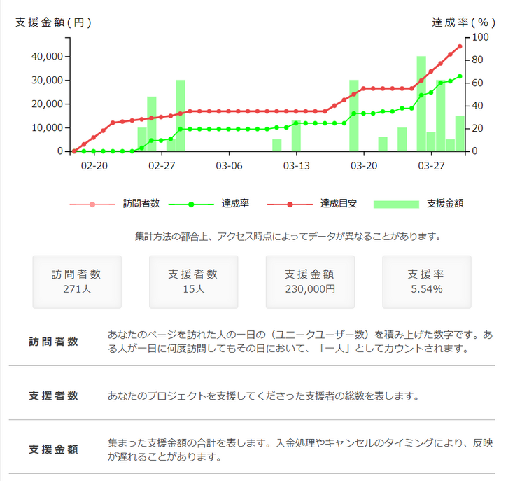 専用URLを使うと、あなたのシェアによってこのプロジェクトに何人訪れているかを確認できます