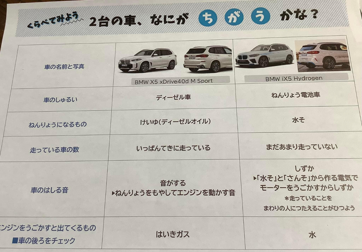 子どもたちにディーゼルエンジン車と 水素電池エンジン車の違いを