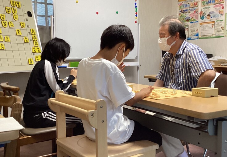 毎週火曜日にBremen会館で行っています将棋教室も19日は通常通り実施することができました。写真はご指導されている阿部徹先生を相手に真剣勝負を挑んでいる2名の子どもたちです。このお子様たちは毎週参加され、棋力向上は目を見張るものがあります。