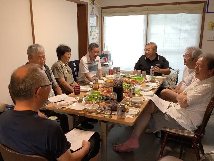 今年も、脳梗塞・心筋梗塞・種々のガンをくぐり抜けて生き延びで実行委員として集まってくれました。テーブルの上には食事がありますが、ちゃんと内容については話し合いました。 受験を控えた中学校3年生の参加を認めるかどうか?チェスクロックの使用法、練習会の対戦のさせ方などなど、結構話すことはたくさんあります。