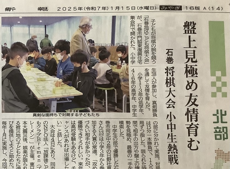 今までは、石巻地域で紹介されることが多かった将棋大会も