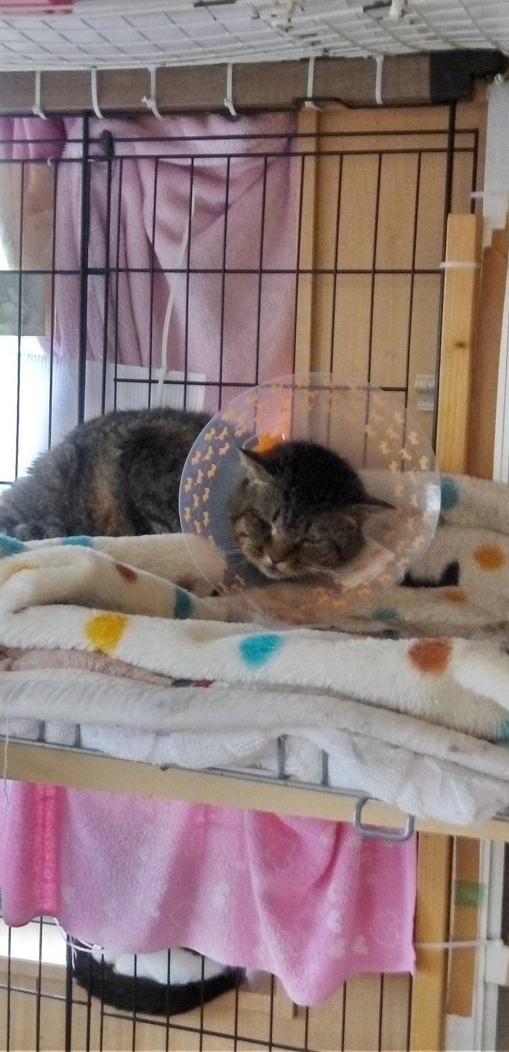ぶちゃ君は牢名主のようにまだカラーを着けたまま「デン」と横になってました😅