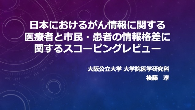 (学会発表を行った内容:日本におけるがんの情報格差について研究を行っています。)