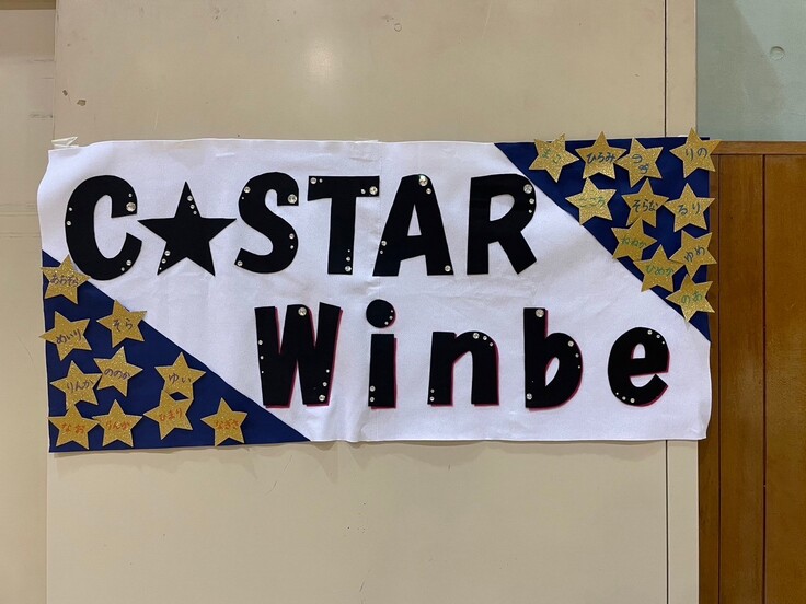 手作りの横断幕 体育館に貼って元気をもらっていました。