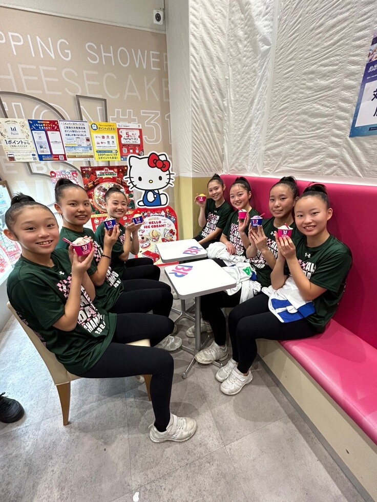 演技後は、全日本チアダンス選手権大会のJunior部門編成チャンピオンの副賞としていただきました、サーティーワンアイスクリーム券をつかって、T-girlたちはアイスを食べました!!