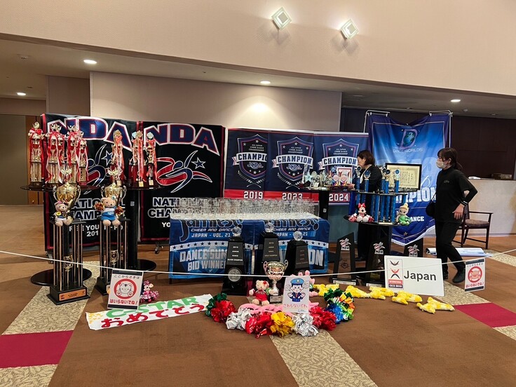 歴代のトロフィーの数々、、、あらためて JCDAのクリスタルの盾の数がすごい!
