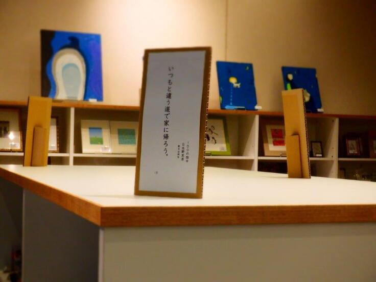 日頃は、ショップのグッズを眺めながらちょっと休憩したりコーヒーを飲みながらおしゃべりしたりするスペース。無料でちょっと手を動かせる素材が置いてあったり、不思議なことばやオブジェがあちこちに置いてあったりします。