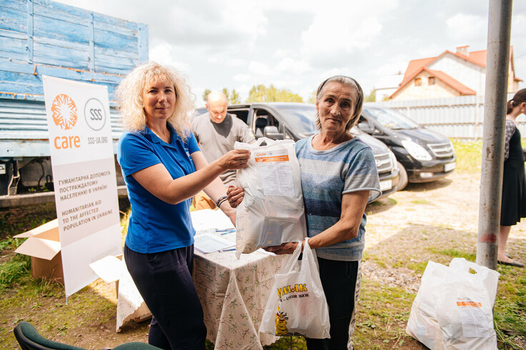 CAREは、地元のパートナー組織である CFSSSと連携し、食料、医薬品、衛生用品などの人道支援物資を、ウクライナ国内で支援を必要としている人々に配布しています。食品パッケージには、即席めんやスープ、パスタ、ひき割り豆、野菜の缶詰、砂糖、油などの製品が含まれます。