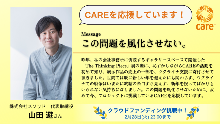 2022年4月から5月に行われた際は、国内外約19組のデザイナーによる作品を展示販売され、その収益をウクライナや周辺国での人道支援に充ててほしいということで、CAREにご寄付をお寄せくださいました。