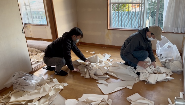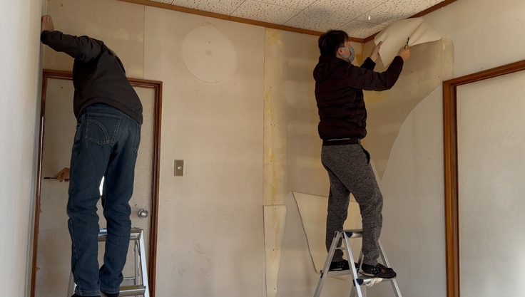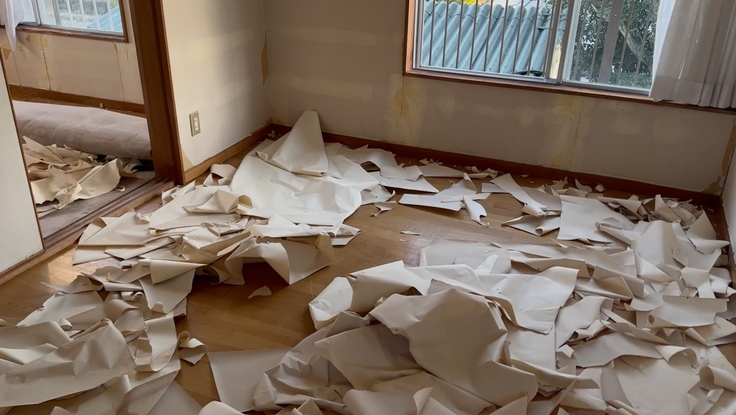 さて本日はシェルターの隔離部屋の壁紙をバリバリと剥がしてきました!