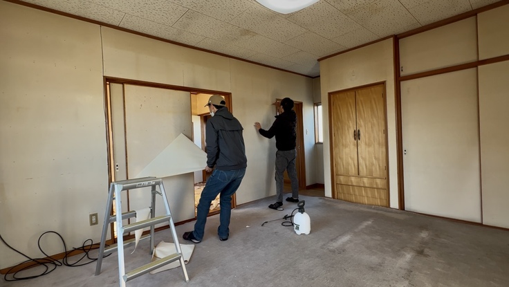 1階はまだ脱走防止壁の設置場所の相談や間仕切りの解体等があるので、まずはすぐ手のつけれる2階から🌟