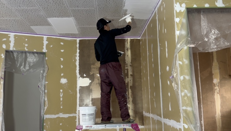 そして本日はアクにシミだらけのジプトーン天井を下塗り!