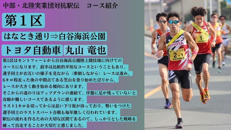 毎年11月に愛知県田原市で中部実業団と北陸実業団の合同開催である中部・北陸実業団対抗駅伝