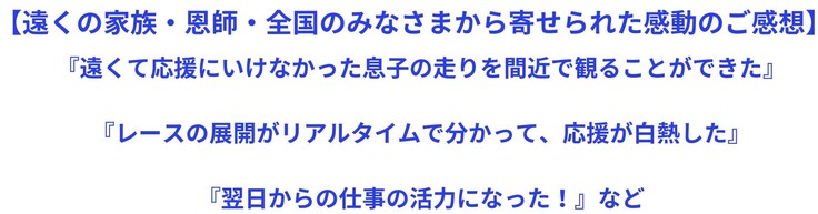 なってしまいましたが、その中でもライブ配信を実施し、選手たちの走りを全国のファンに