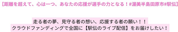 『距離を超えてあなたの応援が選手の力となる!』『全国に【駅伝ライブ配信】をお届けしたい』