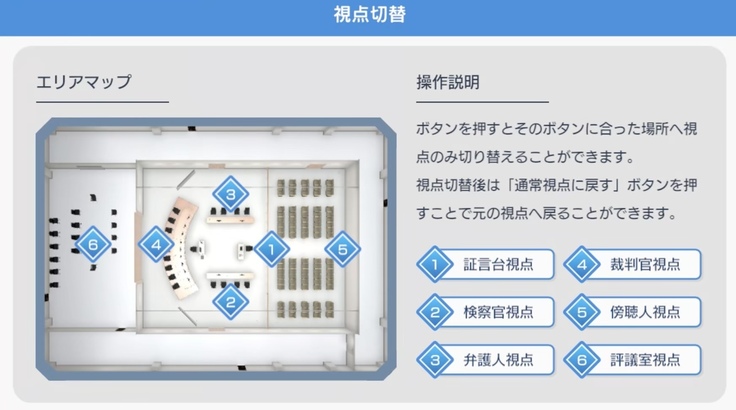 すべての国民が裁判を体験できる環境作りのために、この2年間「メタバース法廷」の開発を進めてきました。最新のVR技術を用い、誰もがアバターになって、裁判官、裁判員、検察官、被告人、弁護人、傍聴人を体験することができます。「裁判という場」を事前に体験することで、実際に裁判員として参加することに対する不安や疑問を軽減し、より積極的な司法参加を促すことをめざします。