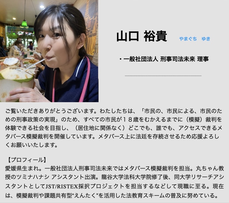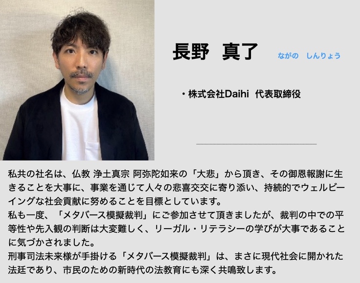 実際の裁判に臨む機会はそうそう無いかもしれませんが、メタバース模擬裁判を活用することで、成人年齢までに一度は裁判を体験したことがある社会をめざせると考えています。