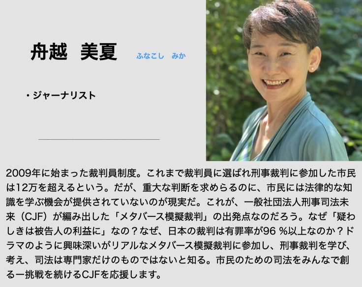 一般社団法人刑事司法未来がメタバース模擬裁判を公開する費用500万円(2025年4月ごろから順次予定)、メタバース模擬裁判に関わる運営活動・広告費200万円、podcast番組を配信する経費300万円に充当します。