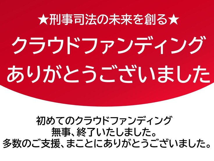 刑事司法未来、はじめてのクラウドファンディング、目標金額には届きませんでしたが、多数のご支援をいただきました。