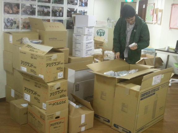 事務所には、患者さんの治療に必要となる物資が届き始めました。