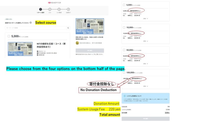 2) Donation via this crowdfunding website (System usage fees of ¥220 (inc. tax) apply)
