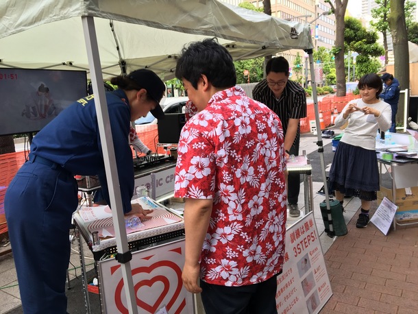 池袋の大通りに面して数々露店が並ぶ中、私たちが持ち込んだのは先日の新着情報でもお伝えしました、新開発の「SUPERSONIC CPR」!