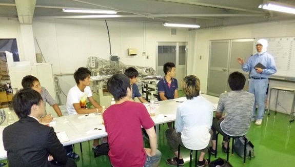 (上の写真は、第1弾として山崎製パンと共同開発した試作品の高大合同試食会の模様です。かつて、10万個を売り上げた産学連携実績がある高校の先生に指導を受けている高校生たちとのコラボでした)