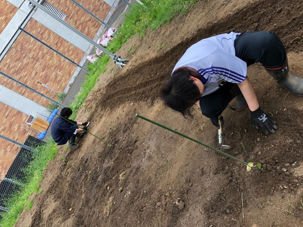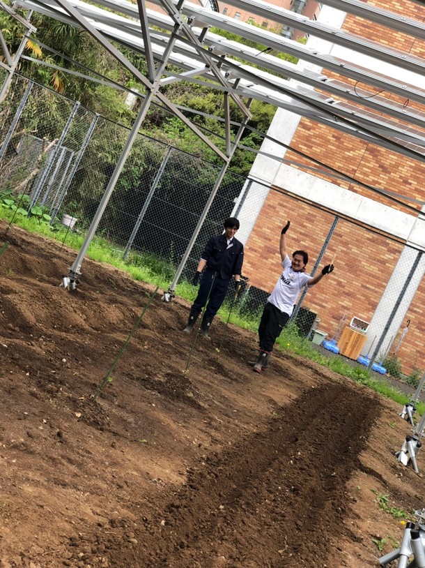 作業は小口先生の指導のもと栽培班の学生と、本日はなんとCUCサポート職員の神田さん、魚見さんがお忙しい中参戦してくださいました!