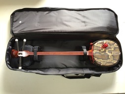 自主練習用の三線 本番用の三線は蛇革で覆われていますが、自宅練習用ということであれば、音質的にも十分な三線です。