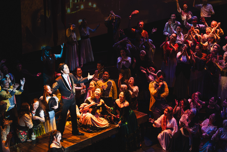 日本語では「歌の劇」と書いて「歌劇(かげき)」と訳されます通り、歌を用いてドラマが進み、オーケストラの音楽、演劇や作品によってはバレエなどのダンス、舞台美術、衣裳、照明オペラ台本による文学や詩など、さまざまな要素が一体となって表現される「総合舞台芸術」の真骨頂であります。