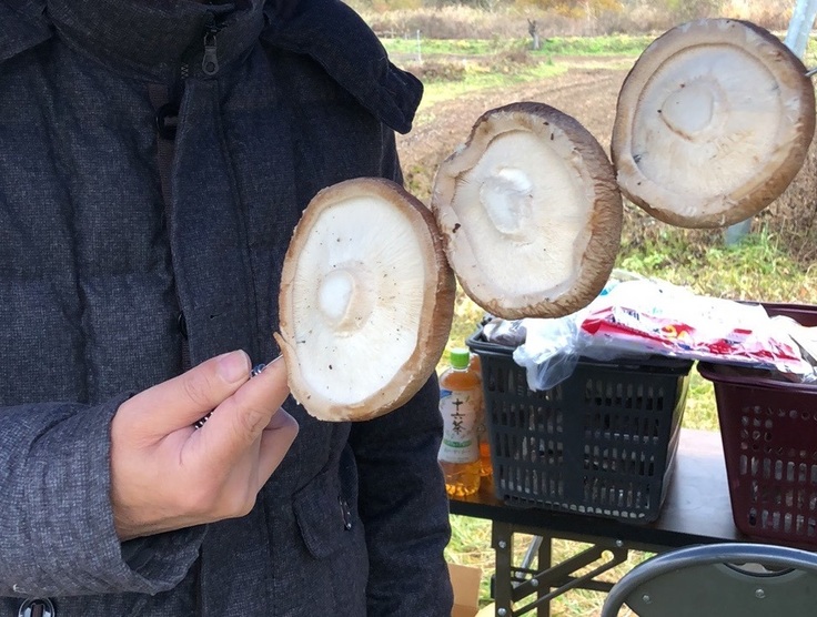 大きな椎茸でしょう!これが酵素で作った湖南の椎茸です。リターンの中でもお届けできる予定です。肉厚でジューシーで、ステーキみたいな感じですよ。先日も、こども食堂ネットワークへお届けしてきました。
