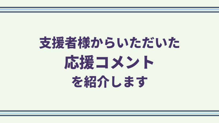 本日も、これまでご支援くださっている皆様からの応援コメントを紹介します。