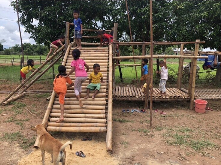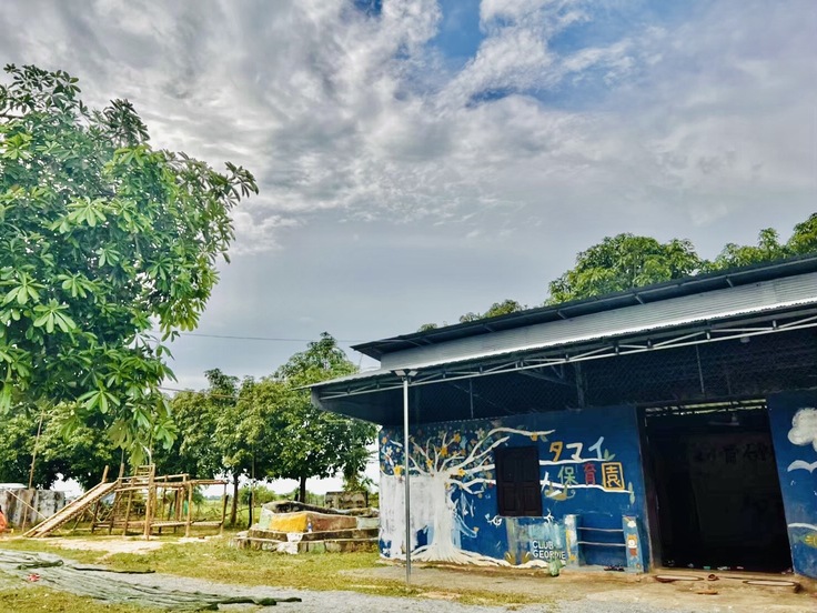 幼い子どもがいるために働くことが難しい親や家庭の就労支援、村人たちの雇用創出、子どもたちの学習機会の提供を目的として2015年に保育園の設立をしました。コロナ禍で運営は一時停止していましたが、2022年9月より日本の企業様にご協賛頂き、運営の再開に至りました。現在月曜日~土曜日まで運営しており、月謝は無料である代わりに給食用のお米や野菜等を納めてもらうようにしています。現在3名の村人を先生として雇用。また敷地内には学生団体によって建造された図書館、語学教室、現地NPO法人earth tree様にご協力頂き建造した竹製のアスレチックなどがあります。