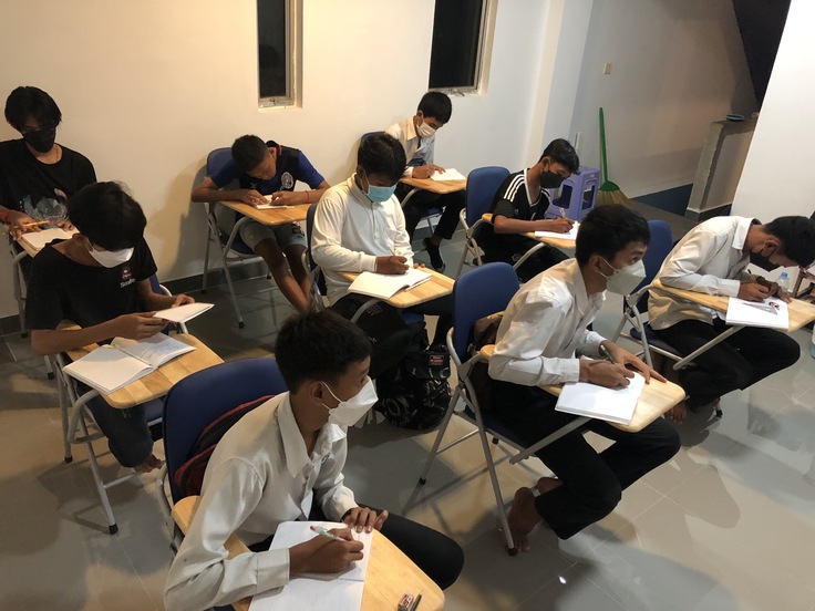 コロナ禍の間にスラムの日本語学校が運営活用できなくなっため、2022年8月日本の企業様のご協賛により本施設の一部を改修し新たに日本語教室「山下日本語道場」を開校しました。現在は約20名の生徒が通っており、無料での日本語授業を(月)~(金)で行っています。現在は、スラムの日本語学校で日本語を学んだ弊社カンボジア現地スタッフのレアッカナー及び弊社日本人スタッフ、日本人インターン生数名で授業を行っております。