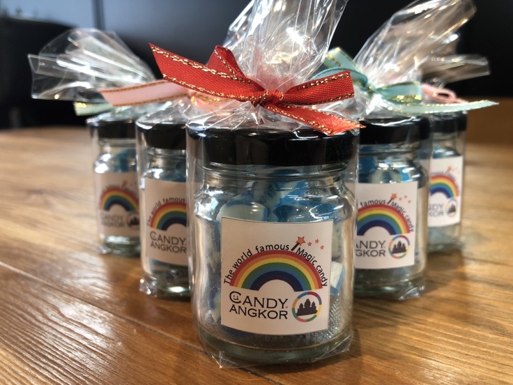 カンボジア初の飴細工職人が誕生した、キャンディーアンコールさんの可愛らしくて美味しいキャンディーです。カンボジアのイオン各店や空港でもお土産品として人気を博しています。手に取って頂いた方の幸せと願望実現を、アンコールワットに程近い願いが叶うと言われるお寺で祈願し出荷されています。カンボジアの職人さんの想いが込められた幸せの飴をぜひご堪能ください。