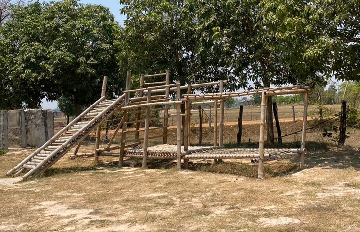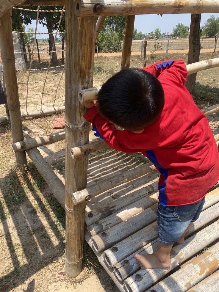 保育園を出てすぐ右側には、弊社がデザインを行い、現地NPO法人earth tree様にご協力頂き建造した竹製のアスレチックがあります。