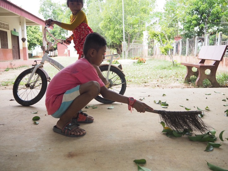さらに、それはいいアイデア!と思ったのが大きな葉っぱでの掃き掃除です^^