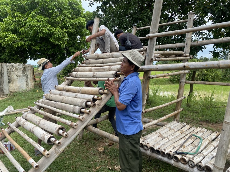 こども達や先生がご飯を食べたり遊ぶスペースとして、また村の方と交流したり休憩する場を作ろうということで今回東屋を作りました。