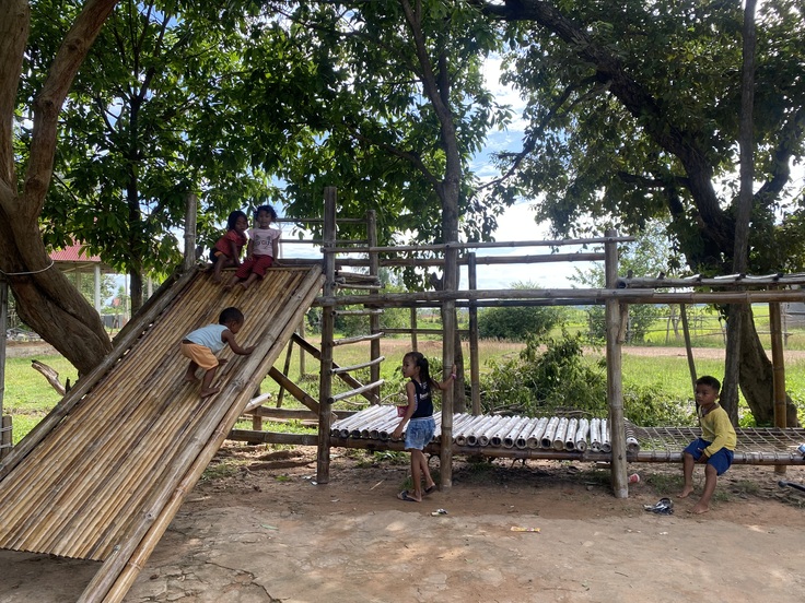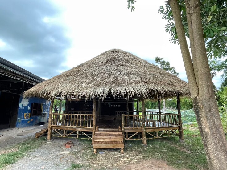 カンボジアは朝から日差しが強く、スコールになると外に出られず、タマイ保育園には野外で休憩できるスペースがありません。