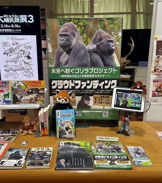 学校法人市川学園 市川中学校市川高等学校の第三教育センター(図書館)内では、このクラウドファンディングに合わせてゴリラの企画展を開催頂いております。なんとこの取り組みを紹介する動画まで制作いただき放映中!学生の皆さんの学びと行動変容に繋がる機会となれば幸いです。