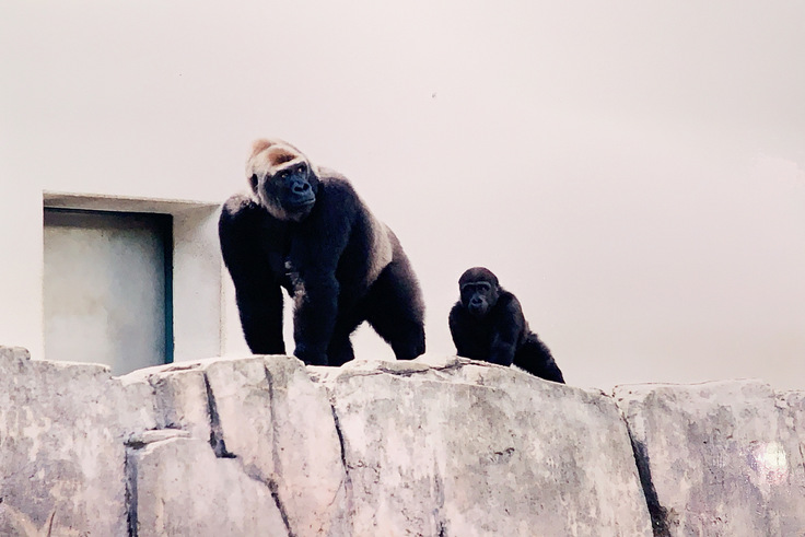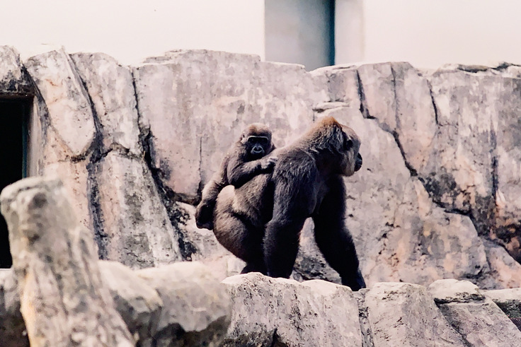 動物公園では、1985年開園当時からゴリラを園のシンボルとして飼育を予定してましたが、ゴリラの来園は叶わず、1990年にモンタ(オス)とモモコ(メス)を迎えてゴリラの飼育がスタートします。