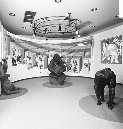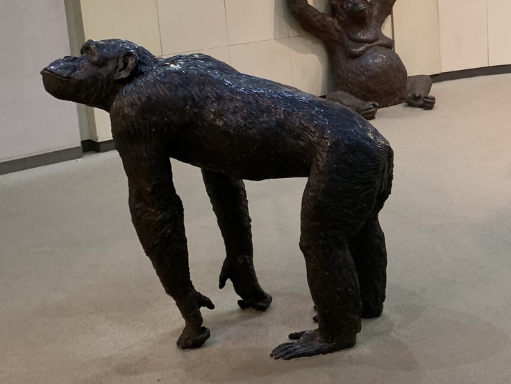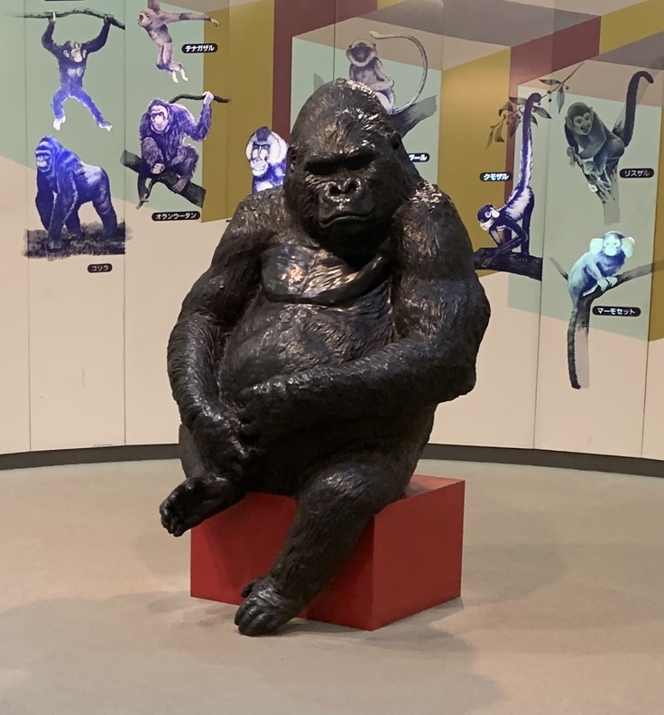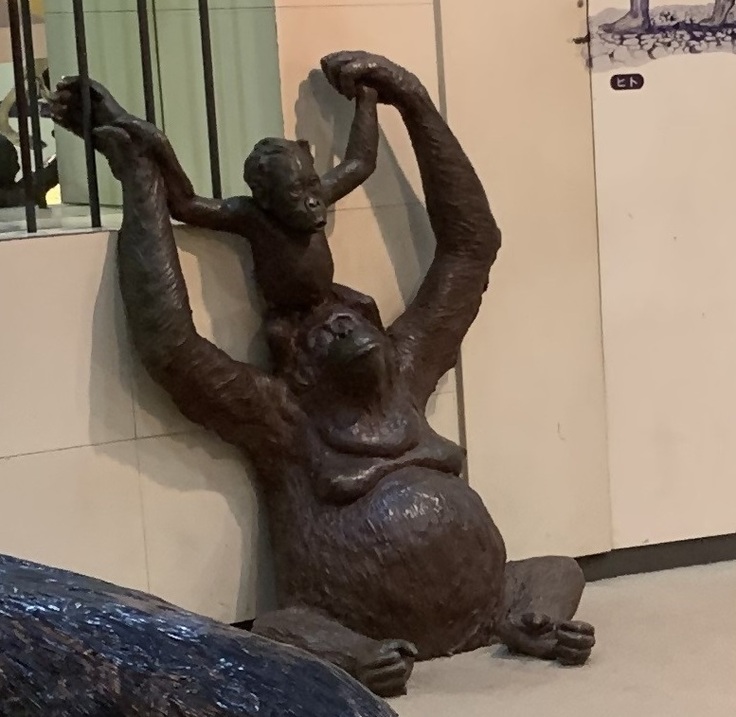 こちらのチンパンジー像は開園当初から動物科学館に鎮座し、ゴリラ像・オランウータン像と同様に、たくさんの来園者に思い出をくれたチンパンジー像です。