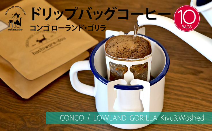 コーヒー豆やハチワレ堂<コンゴ ローランド・ゴリラ/ドリップバッグ10個セット>