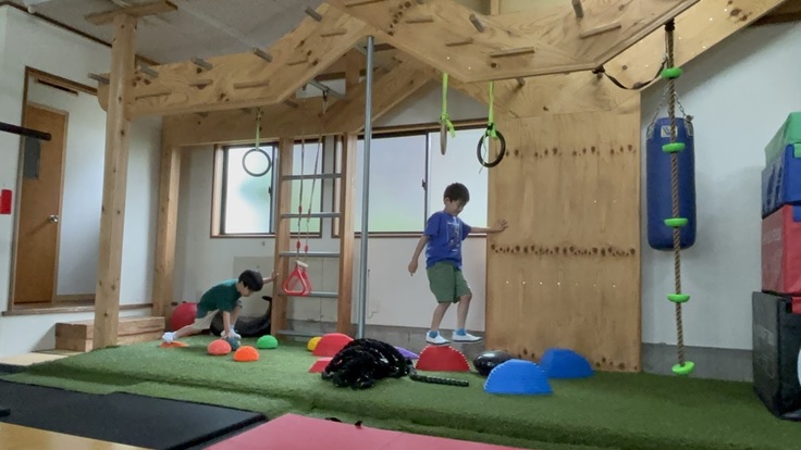 ①については、2024年1月ごろに、Chimaira fit河北で、雲梯を使った教室になります。ボックスを登ったり、くぐったりするのは、子供たちが好きなのは運動教室で調査済みでした。なので、ジムで少人数で、教室ができないかと思いスタートしたのがきっかけでした。雲梯を使って、吊り輪やロープをやったりと子どもたちの可能性を広げて自ら学ぶような教室が完成しました。子どもたちには選択肢を与えてチャレンジしてもらいます。この先に、スタッフは指導をするのでなく、環境を作るのが仕事になります。そんな教室です。